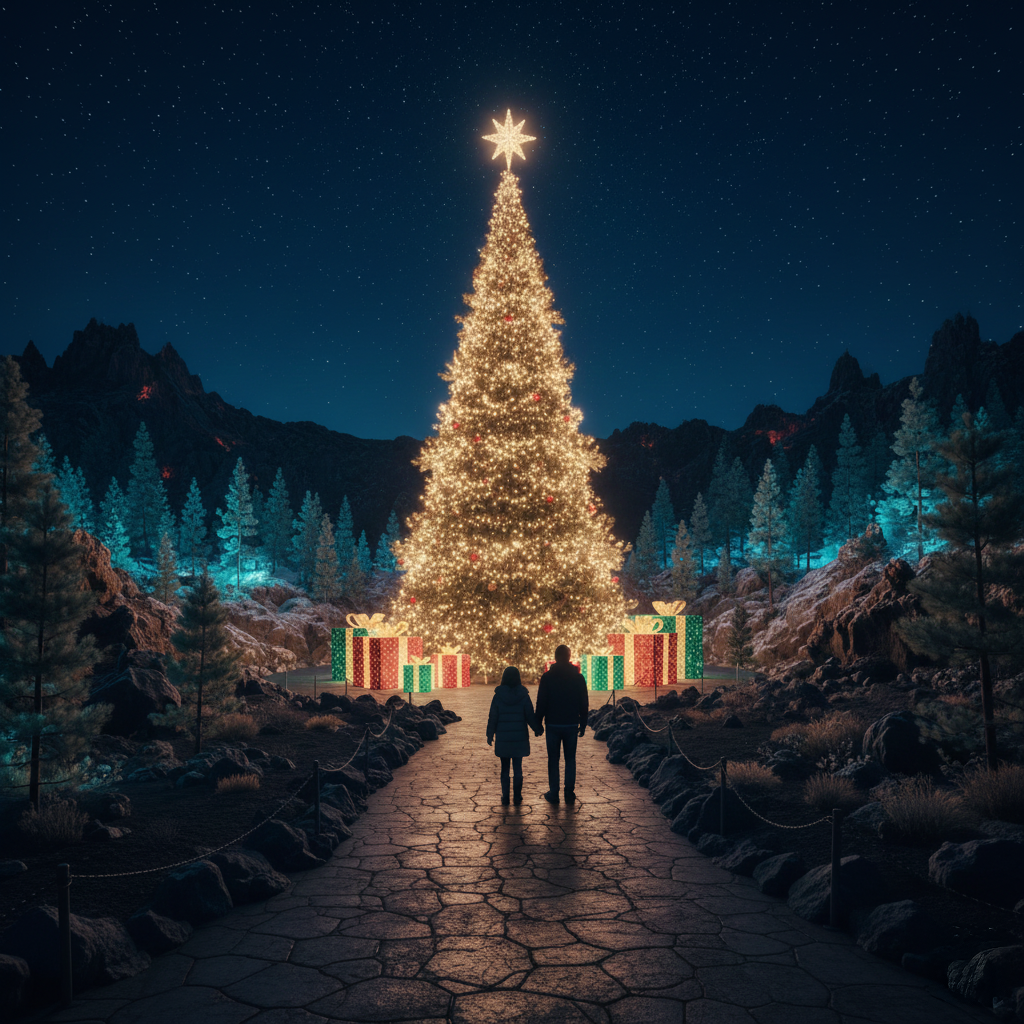 Noelandia destaca por su paisaje único transformado: los senderos que antes mostraban roca volcánica ahora se iluminan con bosques luminiscentes, miles de luces que simulan luciérnagas y escenarios que te hacen sentir los copos de nieve al caer. Es un sitio pensado para revivir la ilusión navideña, perfecto tanto para familias como para parejas o grupos de amigos que buscan una aventura visual sin igual.